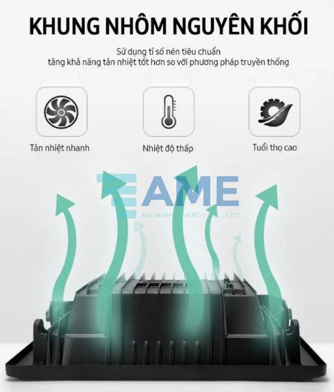 - Chất liệu: Nhôm sơn tĩnh điện được đúc nguyên khối có phay rãnh tản nhiệt, kính cường lực.